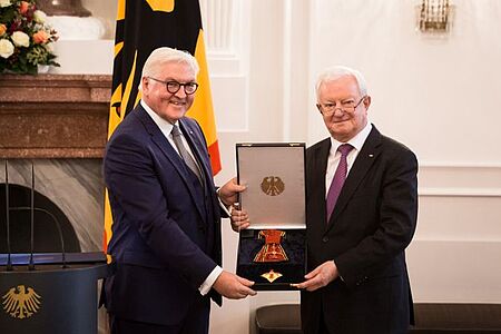 Bundespräsident Frank-Walter Steinmeier hat am 13. November im Schloss Bellevue den Ehrenpräsidenten des Deutschen Roten Kreuzes (DRK), Dr. Rudolf Seiters, wegen „seines herausragenden Wirkens“ mit dem Großen Verdienstkreuz mit Stern und Schulterbund des Verdienstordens der Bundesrepublik Deutschland ausgezeichnet. „Es gibt nur wenige Menschen, die die politischen Geschicke unseres Landes maßgeblich mitgestaltet und zugleich in herausragender Weise soziale Verantwortung übernommen haben“, sagte Bundespräsident Steinmeier bei der Verleihung.