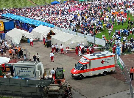 Keine Pause gönnen sich die ehrenamtlichen Helfer des Münchner Roten Kreuzes in der Urlaubszeit. Am ersten Augustwochenende trafen sich 80 von ihnen in der Münchner Arena, um sich rechtzeitig vor dem Bundesligastart im Objekt fortzubilden. Themen waren neben der Objektkenntnis und einer Fahrereinweisung in die Rettungswege und Anfahrten vor allem die besonderen Rettungsmaßnahmen im Oberrang. Dort können bewußtlose Patienten aufgrund des extremen Gefälles nur mit einem Tragetuch gerettet werden. Um im Ernstfall keine Zeit zu verlieren, übten die Einsatzkräfte diese Technik intensiv. Auch…