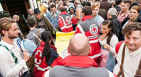Helfer und Ärzte des Münchner Roten Kreuzes standen während des 180. Oktoberfestes 7.551 (Vergleichsjahr: 9.596) hilfebedürftigen Wiesnbesuchern und -mitarbeitern zur Seite. Das Einsatzspektrum reichte von kleineren Blessuren bis zu chirurgischen, internistischen und neurologischen Notfällen.