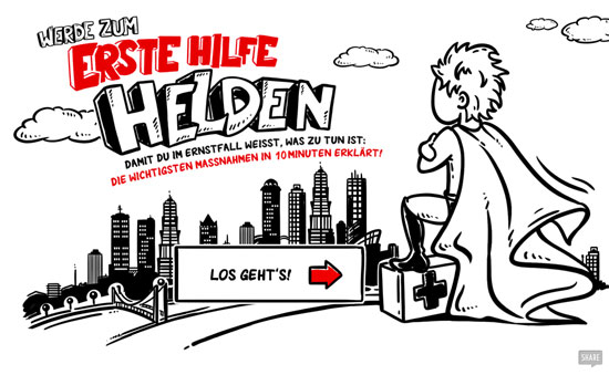 Das Erste-Hilfe-Wissen aufzufrischen, ist jetzt ganz einfach: Das Deutsche Rote Kreuz (DRK) und simpleshow haben hierfür das Online-Lernmodul „Werde zum Erste-Hilfe-Helden“ entwickelt. In der modernen Form des Erklärvideos werden die wichtigsten Maßnahmen für den Ernstfall gezeigt.