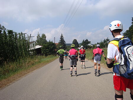 Am 15.08.2015 rollten 100 Inlineskater durch die Hopfenberge in der Holledau. Die 65 km Strecke hatte Anstiege und tolle Abfahrten bei bestem Skaterwetter. Landschaft, Route und familiäre Stimmung sind einmalig schön und machen diese Tour für Skater zu einem Geheimtipp. Dax­Motorräder halfen ggf. über die Hopfenberge, sodass alle ihren Spaß hatten. ­Sani-Skater des Münchner Roten Kreuzes begleiteten diese Tour auf Skates und mit dem Rad. Es gab ein paar Schürfwunden und Prellungen, die medizinisch versorgt wurden - insgesamt wurden die ehrenamtlichen Rotkreuzhelfer auf Rollen acht mal…