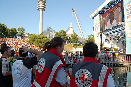 „Ein insgesamt ruhiger Tag, wie wir ihn uns gewünscht haben“, so fasst Peter Lang, der Leiter des Stabes des Münchner Roten Kreuzes die Ereignisse des heutigen 9. Juni 2006 zusammen. Lang, im Berufsleben Abteilungsleiter in einem führendem deutschen Elektronikkonzern, ist zuständig für die Gesamtkoordination der insgesamt fast 200 aktiven Rot-Kreuz-Helfer in München am Tag der WM-Eröffnung. Im Servicezentrum in der Theresienwiese laufen die Fäden des gesamten Großeinsatzes zusammen. Der stellvertretende Vorsitzende des Münchner Roten Kreuzes wird dort unterstützt durch 9 Helfer, die sich um…