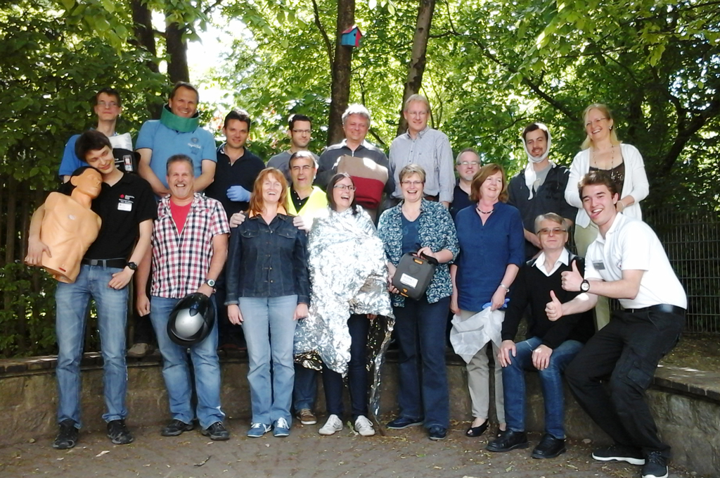 Nun sind sie als ausgebildete Ersthelfer also auf dem neuesten Stand: Sie kennen die aktuellen Notrufnummern, sie wissen, wie sie die Vitalfunktionen des Patienten aufrecht erhalten, sie erkennen frühzeitig Akuterkrankungen sowie die Anzeichen bei Herzinfarkt oder Schlaganfall. Zudem haben sie die stabile Seitenlage beim bewußtlosen Patienten sowie Herz-Lungen-Wiederbelebung geübt. Das sind nur Beispiele aus dem Lehrpensum, welches sich die Teilnehmer mit viel Freude und Spaß in Neuperlach aneigneten.