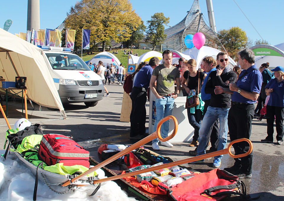 Am Sonntag kamen etwa 50.000 Besucher*innen in den Olympiapark, um nach Herzenslust 50 Sportarten unter fachlicher Anleitung auszuprobieren. Damit dabei alle gesund bleiben, war das Münchner Rote Kreuz mit 14 ehrenamtlichen Helfer*innen seiner Gemeinschaften Bereitschaften, Bergwacht und Wasserwacht im Einsatz. Hinzu kamen die Besatzungen der Infostände, die über ehrenamtliches Engagement beim Roten Kreuz informierten.