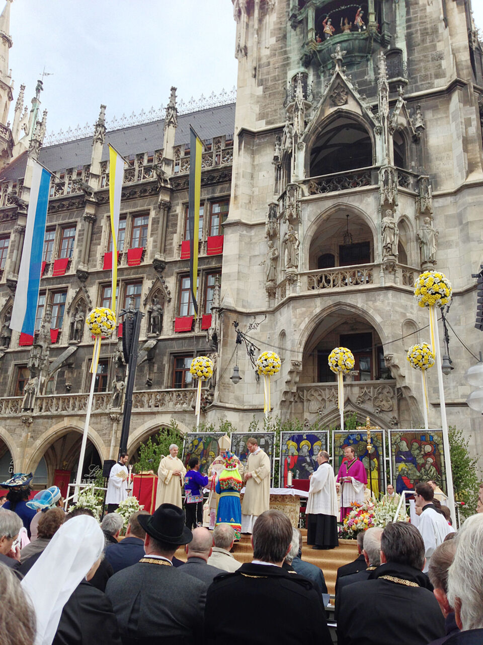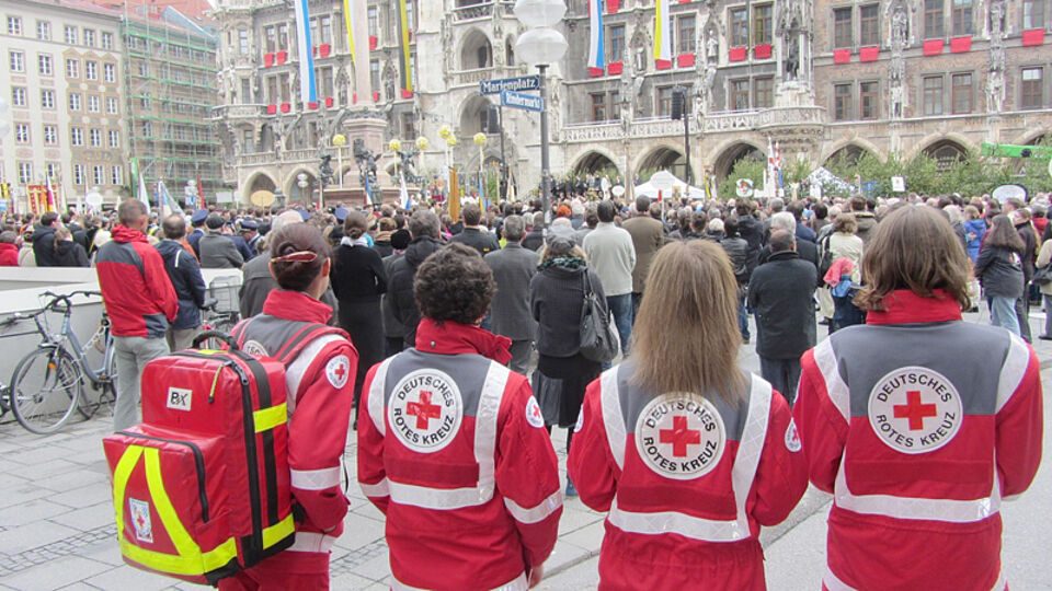 Bei der zentralen Fronleichnamsprozession in der Münchner Innenstadt sorgten gestern 60 ehrenamtliche Helfer des Münchner Roten Kreuzes sowie der Malteser für die Sicherheit der Teilnehmer und Zuschauer. An einer zentralen Sanitätsstation am Marienplatz sowie an fünf Stationen entlang der Prozessionsstrecke standen die Helfer für kleine und große Notfälle bereit. Acht Mal leisteten sie insgesamt Erste Hilfe.