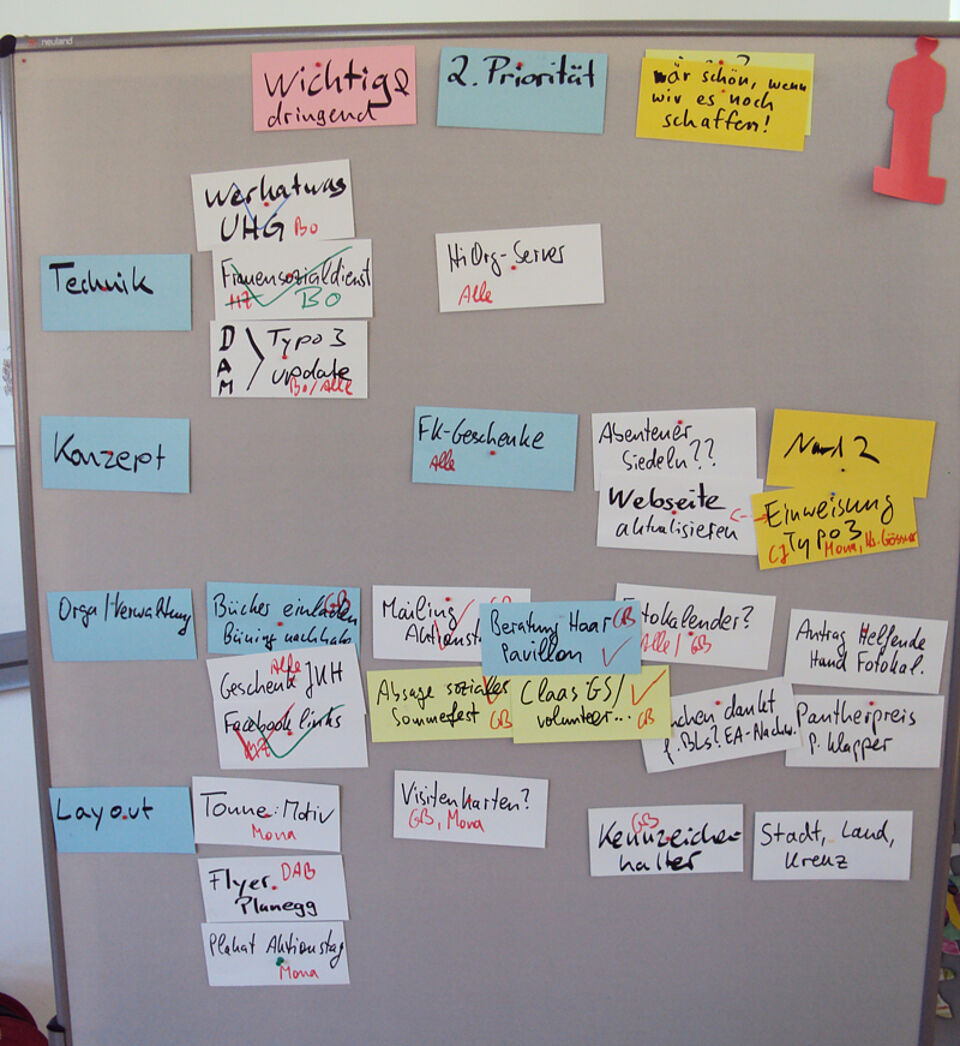 Neben technischen Themen wie neuen Funktionen für das Redaktionssystem, der Überarbeitung der Webseite und der Konzeption möglicher Schnittstellen über Ideensammlungen zu den Führungskräftegeschenken, viele organisatorische Themen bis hin zu Layoutaufgaben. So entstand heute ein neuer Flyer für die Bereitschaft Planegg, eine Ummantelung für unsere Koffertheke und ein Plakat für die Geschäftsstelle.