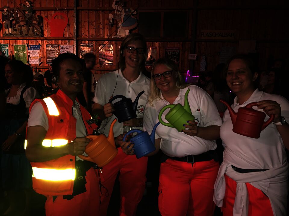 Ausgelassene Stimmung bis in die Morgenstunden gab es auch dieses Jahr bei der Kannaparty vom Deandlverein Ismaning. Damit die Feierlaune nicht ein ungewolltes schnelles Ende nahm und bei medizinischen Notfällen gleich professionell versorgt werden hätte können, standen die Sanitäter der BRK Bereitschaft Ismaning mit dem neuen Rettungstransportwagen zur Verfügung.