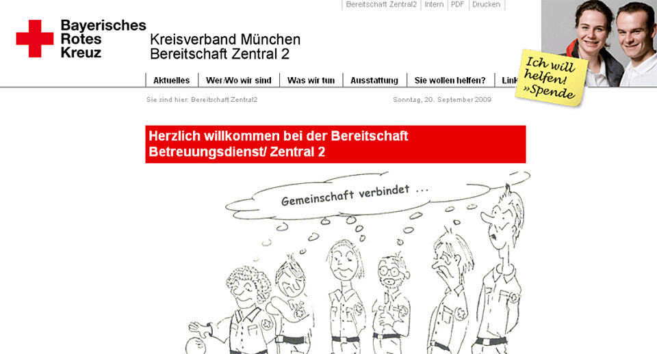 Bereitschaft Zentral 2 des Münchner Roten Kreuzes präsentiert sich seit Anfang September mit ihrer neuen Webseite im Internet. Die ehrenamtlichen Helferinnen und Helfer sind neben dem Sanitätsdienst bei Veranstaltungen auf die Betreuung Unverletzter und auf technische und Logistikaufgaben spezialisiert.