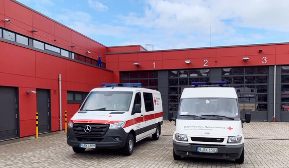 Die ehrenamtlichen Helfer*innen der Bereitschaft Zentral 2 des Münchner Roten Kreuzes freuen sich über ein neues Einsatzfahrzeug.