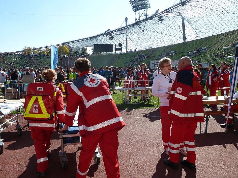 München Marathon am 10. Oktober waren auch mehr als 200 ehrenamtliche Aktive der Bereitschaften des Münchner Roten Kreuzes dabei. Allerdings nicht als Läuferinnen und Läufer, sondern hinter den Kulissen: Sie sorgten für Sicherheit und Gesundheit der insgessamt 18.000 Sportler, die 10 Kilometer, den Halbmarathon oder den Marathon zurücklegten.