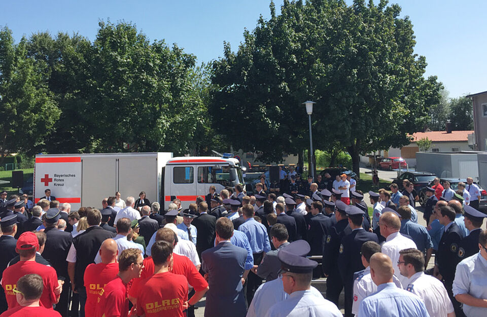 Gestern machte sich eine kleine Reisegruppe aus den Bereitschaften des Münchner Roten Kreuzes auf den Weg nach Mühldorf am Inn. Neben den Helfern unseres Kreisverbandes versammelten sich, auf dem dortigen Festplatz ca. 300 Vertreter anderer Hilfsorganisationen und der Feuerwehr aus ganz Bayern. Anlass war die offizielle Übergabe von Fahrzeugen für den Katastrophenschutz. Auch das Münchner Rote Kreuz bekam zwei Gerätewagen Sanitätsdienst, die bereits seit einigen Wochen in München stehen und in Kürze in den