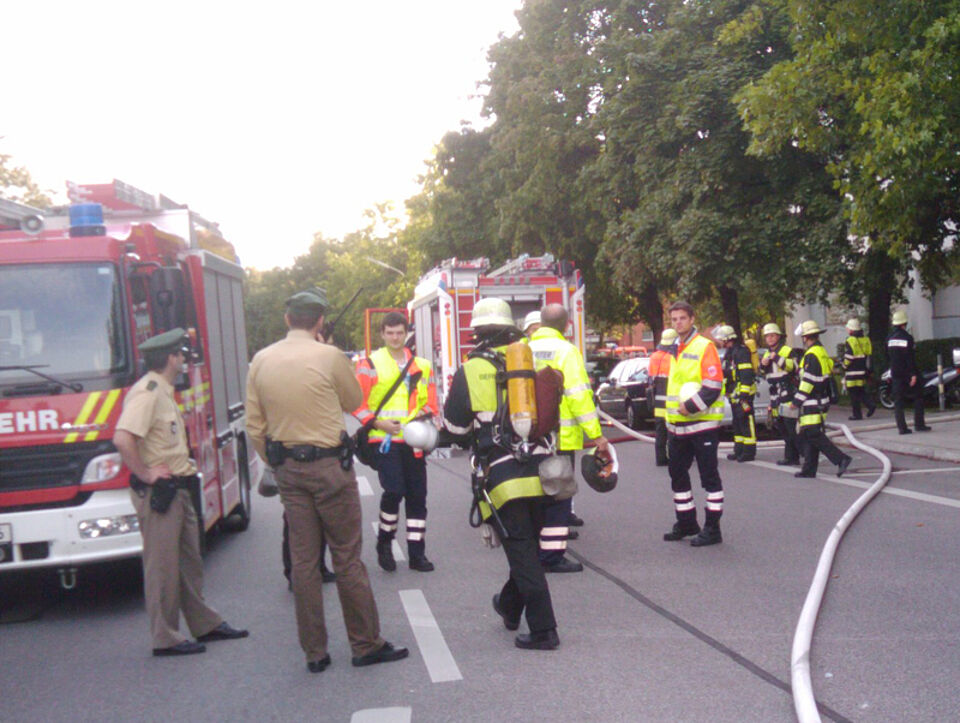 Gegen 17 Uhr alarmierten Anwohner eines Hochhauses im Münchner Stadtteil Hasenbergl die Feuerwehr, weil sie starken Rauch bemerkten. Sofort alarmierte die Rettungsleitstelle ein Großaufgebot von Feuerwehr und Rettungsdienst, um das Feuer zu löschen und Gefahren für die Bewohner des Hauses auszuschließen. Da es sich nur um einen brennenden Wäscheständer handelte, konnte jedoch bald Entwarnung gegeben werden.