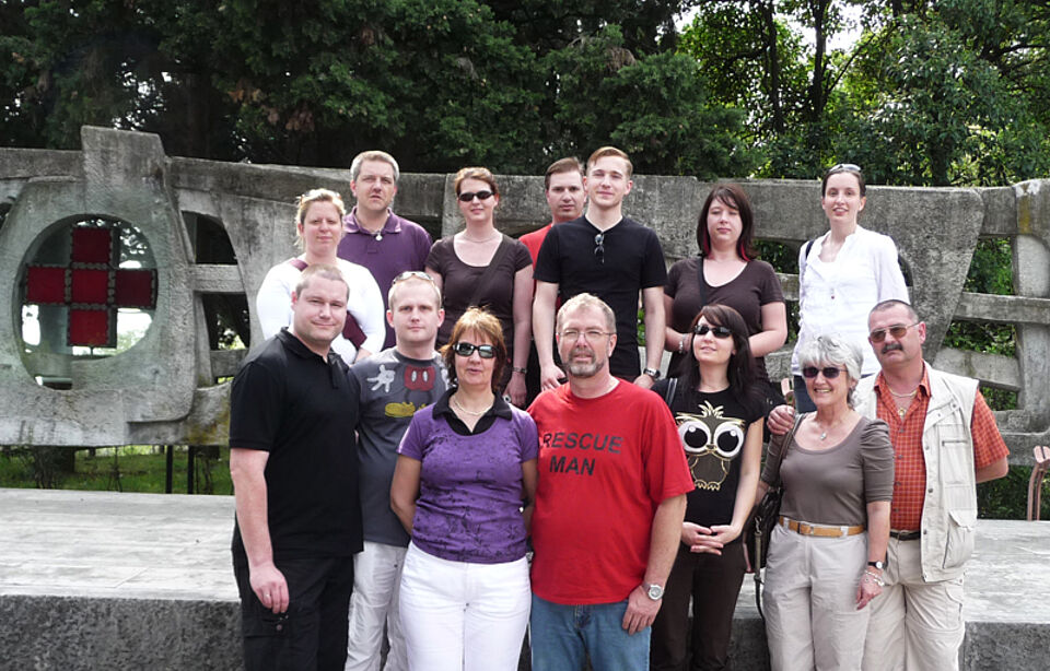 Die modernen Rotkreuzler nutzten vier Bungalows als Basis und besichtigten zunächst das Rotkreuzmuseum und den Dom in Castiglione. Den Dom hatte Dunant 1859 als Behelfslazarett genutzt. Anschließend ging es zur Knochenkapelle Ossarion di Solferino. Und natürlich durfte auch der Besuch des Rotkreuzdenkmals nicht fehlen. Dort haben die nationalen Rotkreuzgesellschaften Gedenksteine gestiftet. Am Sonntag stand dann ein Ausflug nach Verona auf dem Programm, ehe es zurück nach Hause ging.