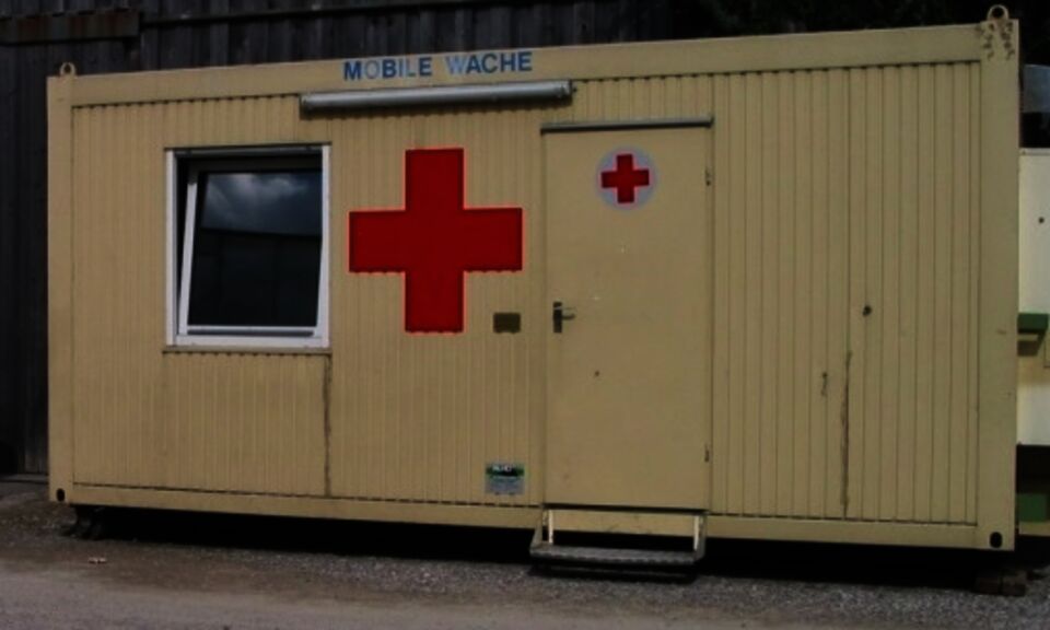Als Sanitätsstation stellt das BRK bei beiden Festen einen speziell hierfür konzipierten Container neben dem Festzelt auf. Hierfür bekommen die Ismaninger Unterstützung vom Fachdienst Technik und Sicherheit des BRK, der den Container mit einem Wechsellader anliefert und fachmännisch aufstellt. Auch sorgen die Kameraden für den elektrischen Anschluss. Der Container bietet genug Platz für einen Sanitätsraum mit Patientenliege und einen Aufenthaltsraum.