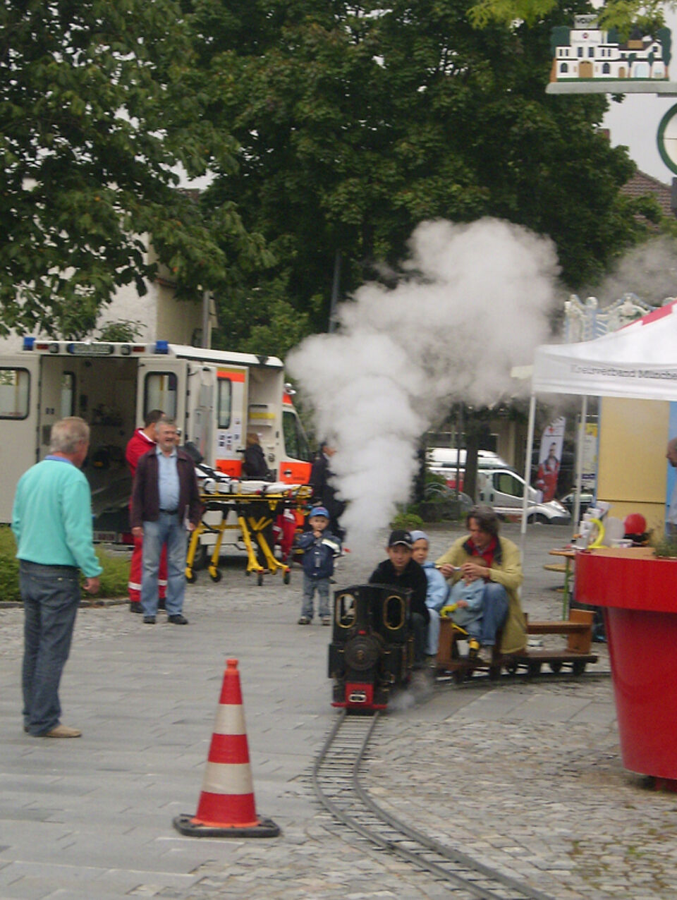 Sie wurden unterstützt von den Bockerlbahnern aus Peißenberg, die einen großen Rundkurs einrichteten. Nicht nur Kinder ließen sich von der dampfenden Lok über den Marktplatz ziehen, auch die großen und sehr großen waren begeistert.