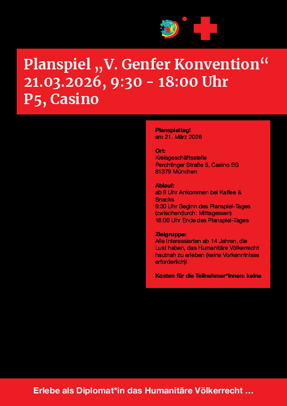 Zielgruppe: Alle ab 14 Jahren, die Lust haben, internationale Politik und Humanitäres Völkerrecht zu entdecken.