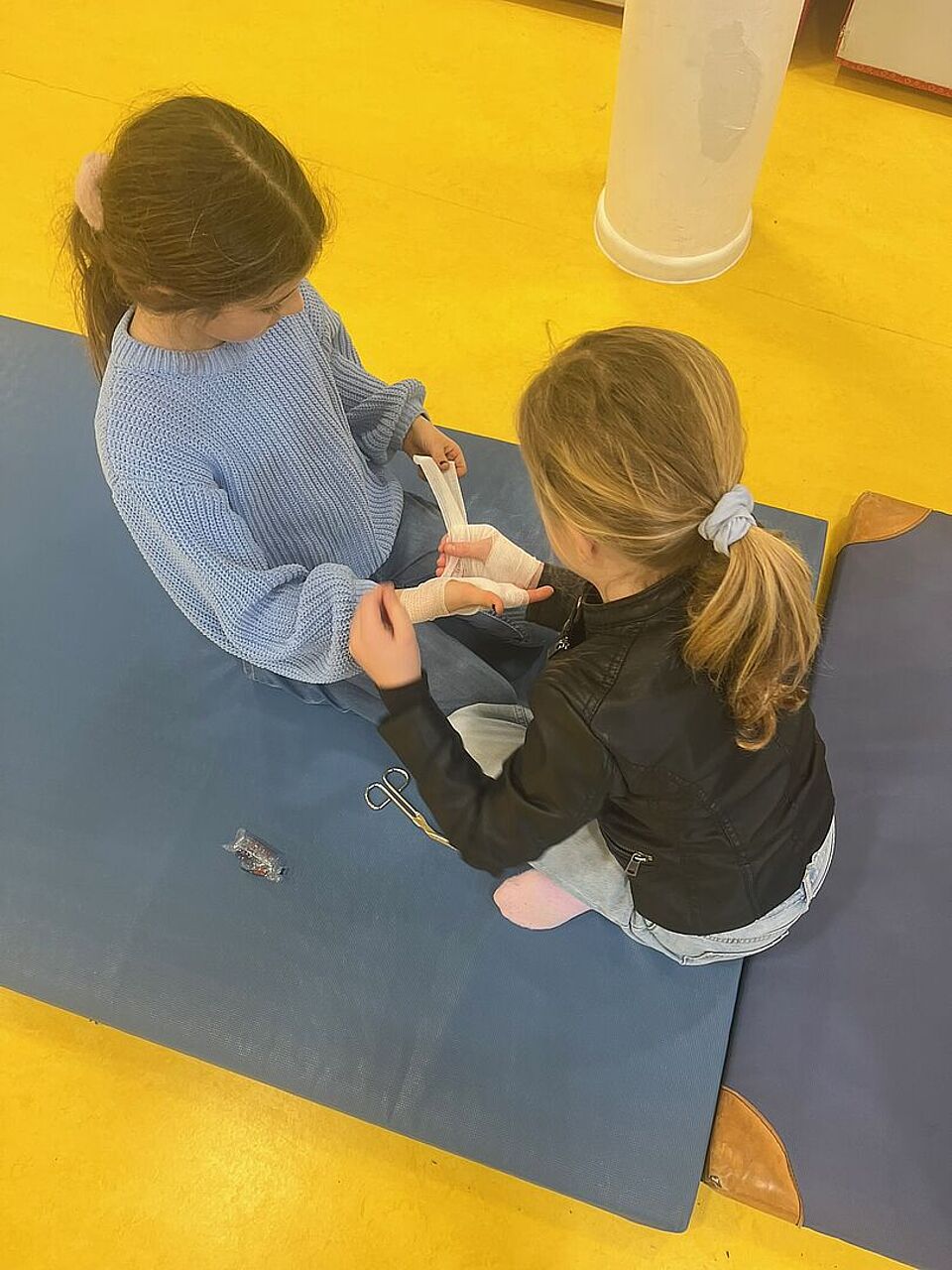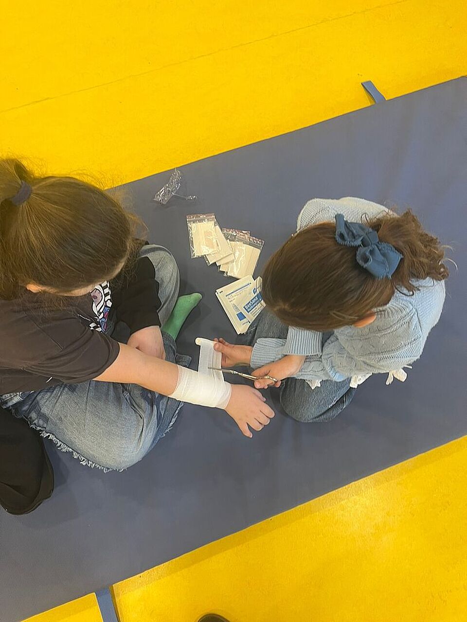 Unter dem Motto „Helfen kann jeder – und es ist kinderleicht“ wurden die Kinder spielerisch an das Thema herangeführt. Sie lernten, wie ein Notruf richtig abgesetzt wird, welche Informationen dabei wichtig sind und wie einfache Verbände angelegt werden. Auch das richtige Verhalten in Notfallsituationen wurde gemeinsam besprochen und geübt.