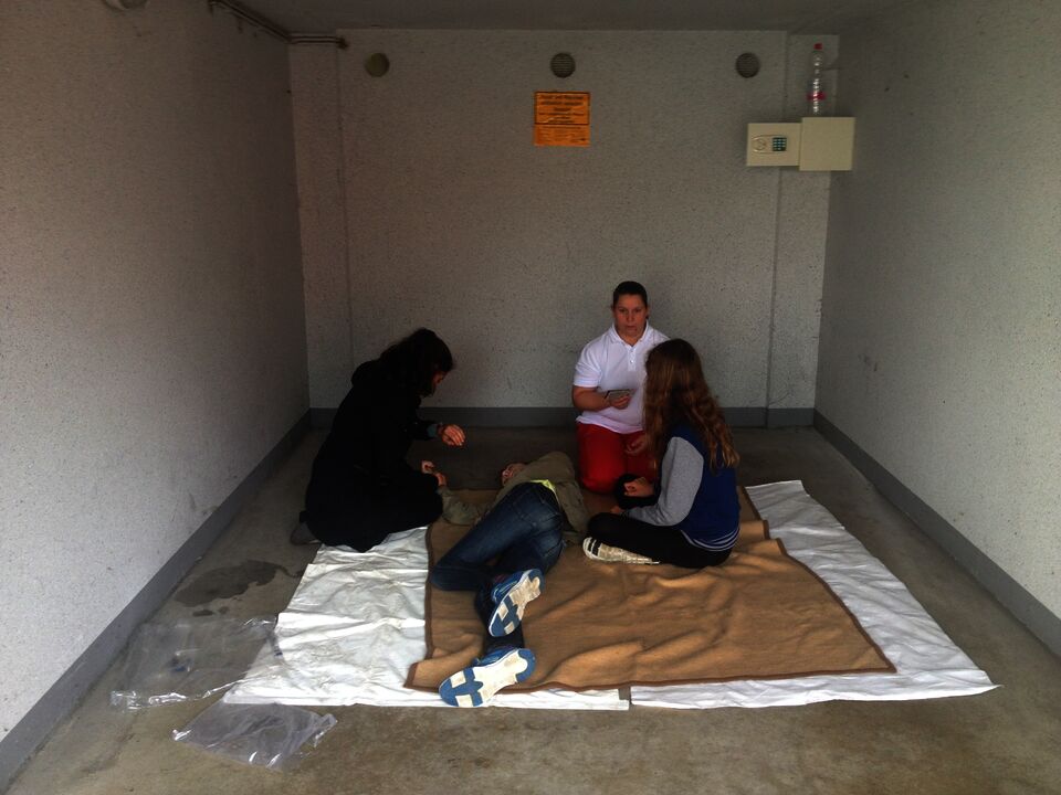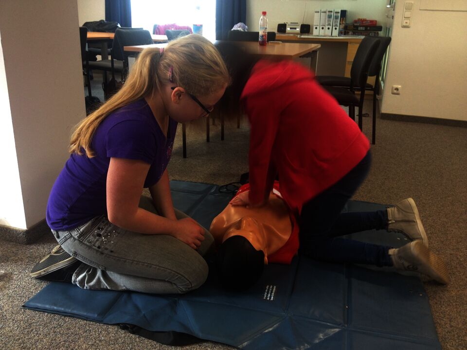 An weiteren Übungsstationen wurden Unfälle dargestellt. So konnten die Schülerinnen und Schüler in realistischen Übungsszenarien die Versorgung spritzender Blutungen mit dem Druckverband genauso lernen wie die Hilfeleistung bei einem Verkehrsunfall mit Fahrradfahrer. „Wir haben auch unseren Rettungswagen mitgebracht, so konnten die Teilnehmer die Zusammenarbeit mit dem Rettungsdienst üben“ betont Ausbilder und Jugendleiter Thomas Büchner.