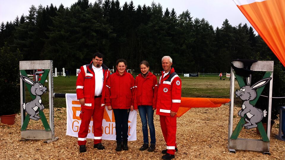 Auch für die beiden Mitglieder der Ismaninger Rot Kreuz Jugend Michaela Huschka und Franziska Petersen war es eine Premiere: Sie leisteten zum ersten Mal zusammen mit Jugendleiter und Rettungssanitäter Thomas Büchner und Sanitätshelfer Hans Bauer Sanitätsdienst bei einer Veranstaltung und wurden gleich richtig gefordert. Am Sonntagvormittag stürzte ein Reiter während der Springprüfung vom Pferd und musste von den Rot-Kreuz-Helfern versorgt werden. Gott sei Dank konnten schwerere Verletzungen schnell ausgeschlossen werden, der Reiter kam mit leichten Blessuren davon und wurde fachgerecht von den Sanitäterinnen versorgt.