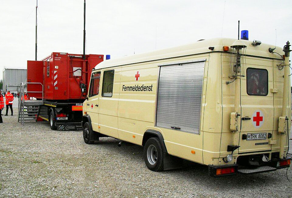 Fachdienst Technik und Sicherheit des Roten Kreuzes: Als eine Sanitätsstation der Malteser auf der Theresienwiese im Schlamm versank, verlegten unsere Techniker spontan spezielle Bodenwaben, damit eine Arbeit in den Zelten wieder sinnvoll möglich war.