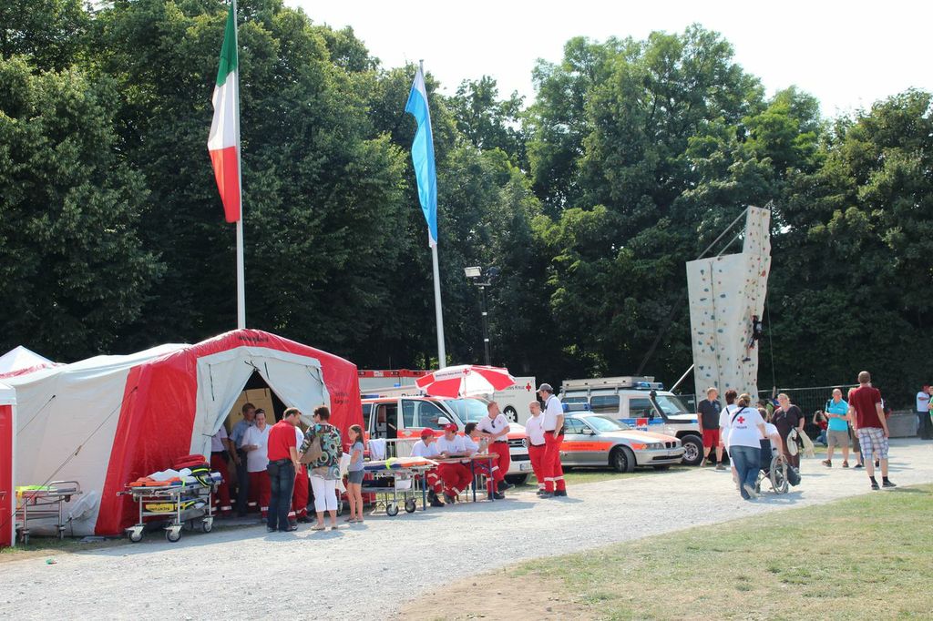 Die Helfer im Hintergrund: Natürlich gehört zu einer Rotkreuzveranstaltung auch ein Sanitätsdienst für alle Fälle. Ehrenamtliche Helfer des Münchner Roten Kreuzes standen für kleine und große Notfälle bereit. Fotos: E. Vigo Fischer (3), K.-H. Demenat