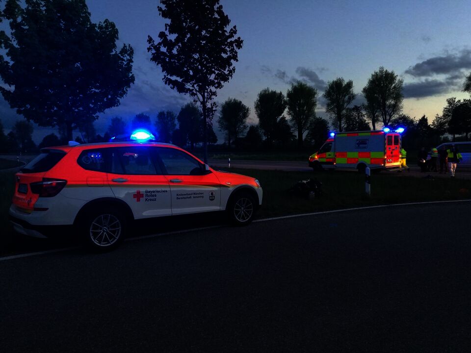 Der schwerverletzte Motoradfahrer wurde an die knapp 10 Minuten später eintreffende Besatzung des Rettungswagens und den Notarzt aus München übergeben und die verletzte Autofahrerin an den Rettungswagen, der zur Unterstützung von der Leitstelle Erding aus Eching entsandt wurde.