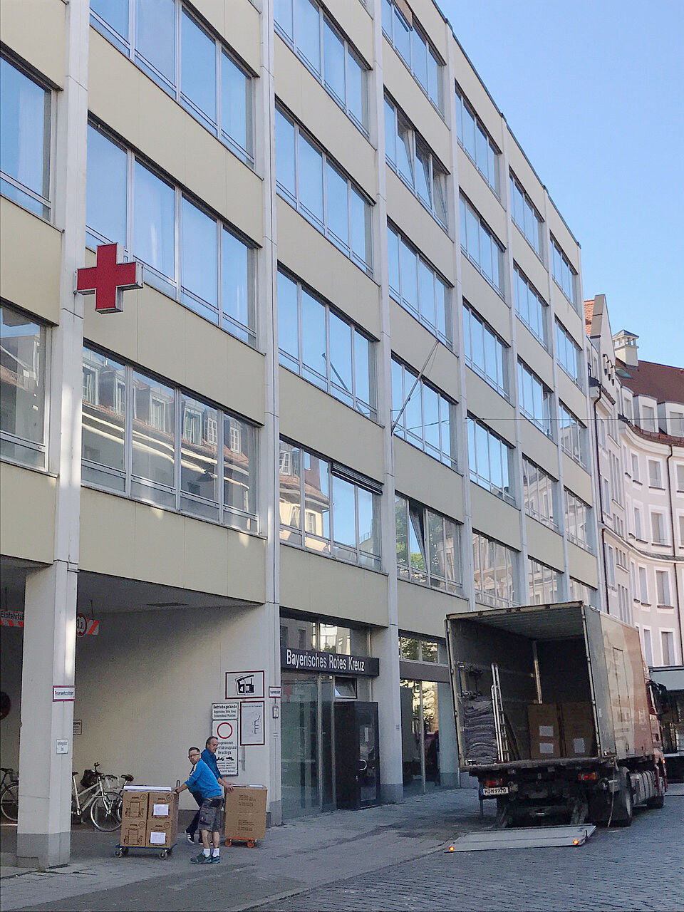 Das Münchner Rote Kreuz zieht mit seiner Geschäftsstelle vom Lehel nach Sendling. Letzte Woche war es nach langer Planung so weit: Die ersten Abteilungen konnten die neuen Räume in der Perchtinger Straße 5 beziehen. Auch diese Woche finden noch Umzüge statt, weshalb es zu Einschränkungen bei der Erreichbarkeit kommen kann. Wenn sich die Abläufe am neuen Standort eingespielt haben und die letzten Bauarbeiten abgeschlossen sind, soll im September eine offizielle Eröffnung erfolgen.
