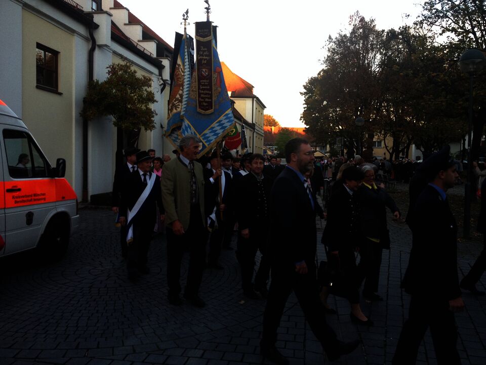 Im Rahmen seines 140-jährigen Gründungsfestes überreichte der erste Vorsitzende des Krieger- und Soldatenvereins Ismaning, Thomas Helk eine Spende über 150 Euro an das Bayerische Rote Kreuz, Bereitschaft Ismaning.