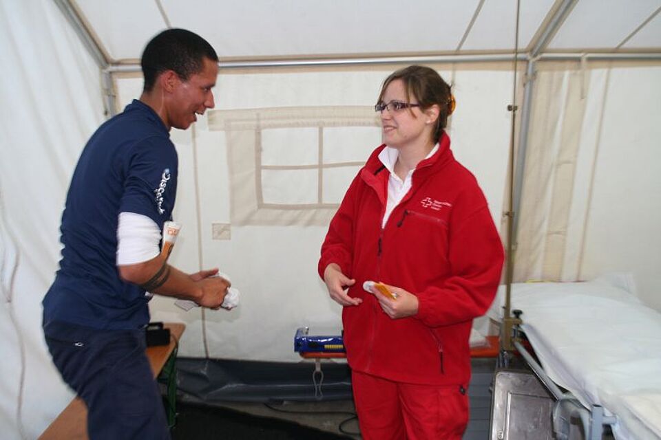 Dank des kühlen Wetters hatten die 100 Einsatzkräfte des Münchner Roten Kreuzes, die für den B2Run Firmenlauf am 21. Juli 2011 mit 10 Fahrzeugen und einem Behandlungszelt angerückt waren vergleichsweise wenig zu tun.