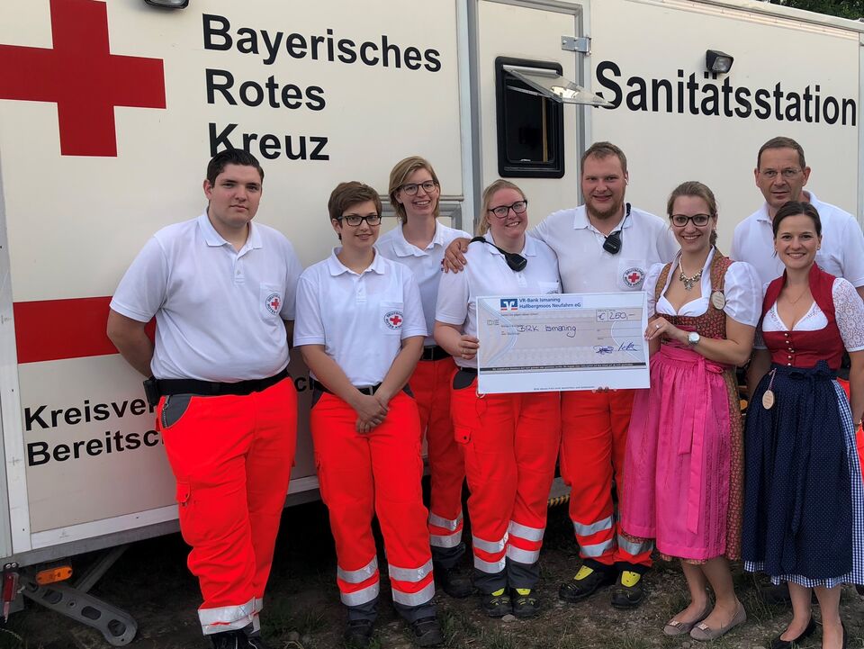 Am Wochenende der Festwoche betreute das BRK Ismaning zu dem die Fahnenweihe des Deandlvereins, die mit zig Gästen und Vereinen kräftig gefeiert wurde. Der Deandlverein bedankte sich dafür mit einer Spende über 250 Euro, die von den Vorsitzenden Nadine Mößbauer und Julia Reger auf dem Volksfest an BRK Bereitschaftsleiter Fried Saacke übergeben wurde, der sehr ganz herzlich bedankte: „Die Spende werden wir für unsere Ausrüstung verwenden. So kommt sie letztlich allen Ismaningern zu Gute.“
