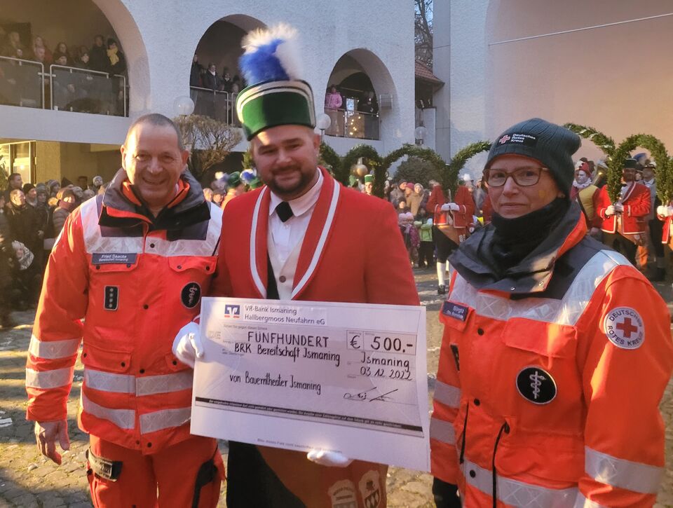 „Wir haben uns sehr über die tolle Geste und die Spende gefreut“, so Fried Saacke, Leiter der BRK Bereitschaft Ismaning. „Herzlichen Dank an alle Mitglieder des Ismaninger Bauertheaters und an deren Vorsitzenden Luis Eisenreich.“ Das „Hochleben“ gebührt allen Mitgliedern der Bereitschaft, die sich sehr darüber gefreut haben. Die großzügige Spende hilft bei der Finanzierung der rein ehrenamtlichen Arbeit und wird für die Beschaffung dringend benötigter medizinischer Geräte eingesetzt.