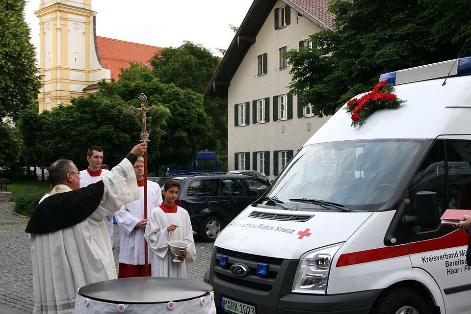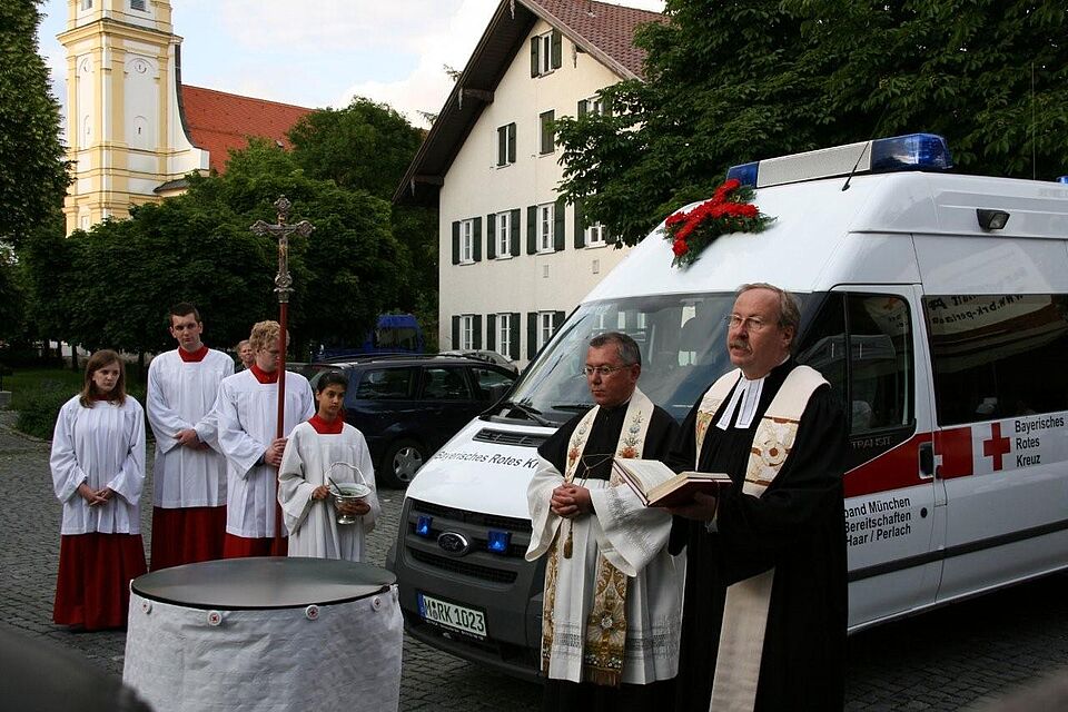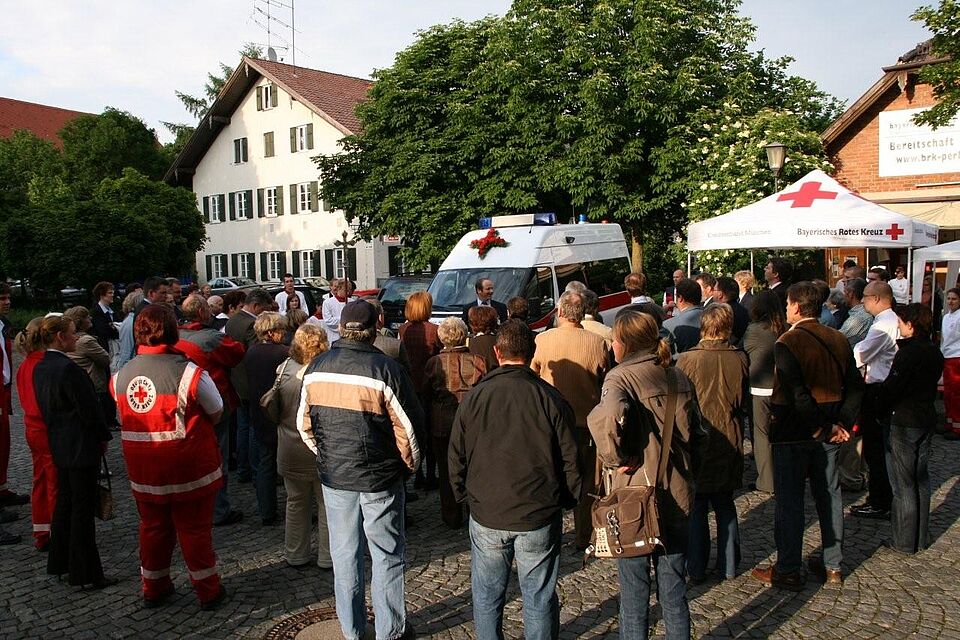 Am Samstag den 30. Mai 2009 wurde das gemeinsam mit der Bereitschaft Haar genutzte neue Mehrzweckfahrzeug (MZF) der Bereitschaft Perlach durch eine Fahrzeugweihe feierlich in Dienst gestellt. Der Leiter der Bereitschaft Perlach Stephan Rischer begrüßte die Gäste und stellte Kurz die Arbeit und die Geschichte der im Jahre 1926 gegründeten Rotkreuzgemeinschaft vor. Die Segnung übernahmen Pfarrer Penzkoffer von der Pfarrei St. Michael Perlach und Pfarrer Röhrs von der Gemeinde St. Paulus. Unter den geladenen Gästen befanden sich unter anderem die Vorsitzende des Münchner Roten Kreuzes, Frau Dr. Kronawitter, der Kreisbereitschaftsleiter Werner Massanz, der Bundestagsabgeordnete Herbert Frankenhauser, die Landtagsabgeordneten Markus Blume und Markus Rindersbacher, sowie einige Stadträte , Abgeordnete des Bezirksausschusses, Vertreter anderer Perlacher Vereine, des THW-München-Ost und anderer BRK Bereitschaften und hauptamtliche Mitarbeiter des Kreisverbandes München.