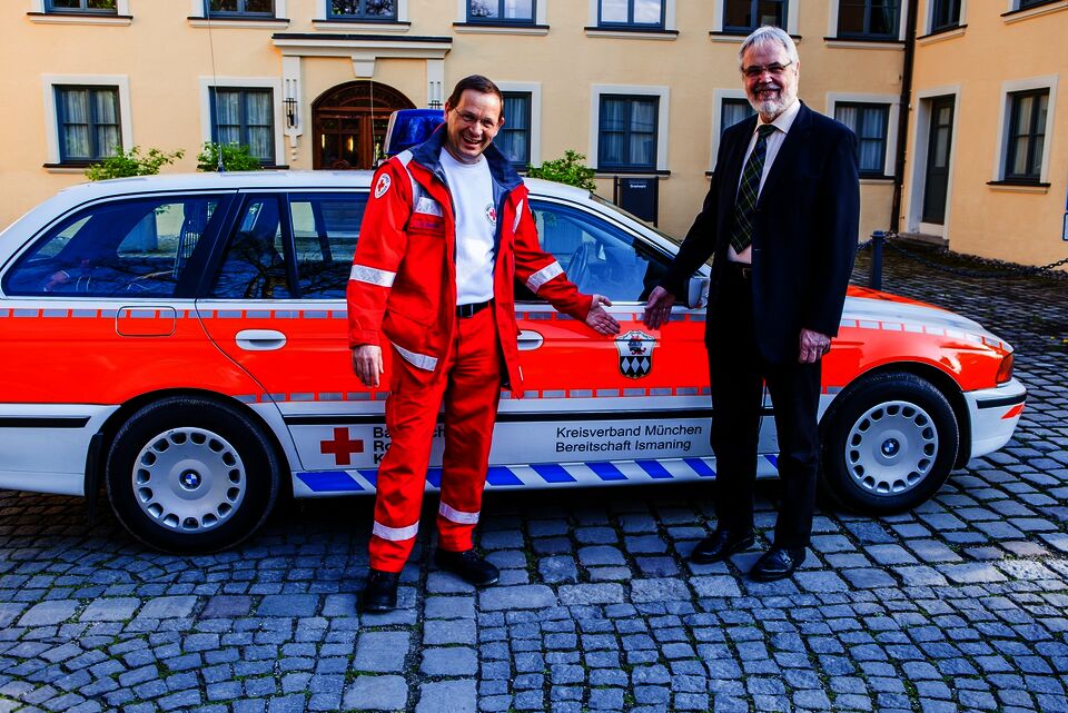 Die Gemeinde Ismaning hatte zuvor der BRK Bereitschaft die finanzielle Mittel zur Anschaffung eines gebrauchten Einsatzfahrzeugs zur Verfügung gestellt. Beschafft wurde von den Mitteln ein BMW 525tds, Baujahr 1999, der zuvor bei der Feuerwehr in Menden als Notarzt-Einsatzfahrzeug im Dienst war. „Das Fahrzeug ist in sehr gutem Zustand und erfüllt alle Anforderungen für den Einsatz als Helfer vor Ort“, so Bereitschaftsleiter Fried Saacke. „Es war unser Ziel mit einer kostengünstigen Lösung möglichst kurzfristig ein eigenes Einsatzfahrzeug für den Helfer vor Ort zur Verfügung zu haben.“