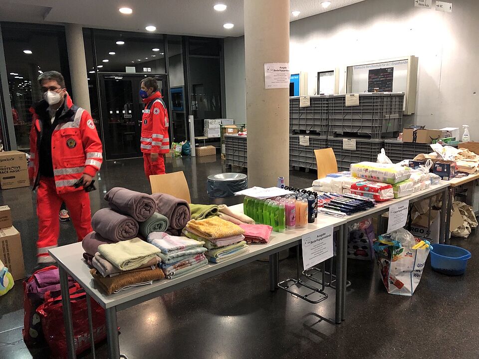 So wurden hunderte Feldbetten aufgestellt, Ausgabestationen für Lebensmittel aufgebaut, Räumlichkeiten für medizinische Versorgung und Covid-19-Testungen ertüchtigt. Die Kapazität der Notschlafstelle umfasst ca. 300 Plätze.