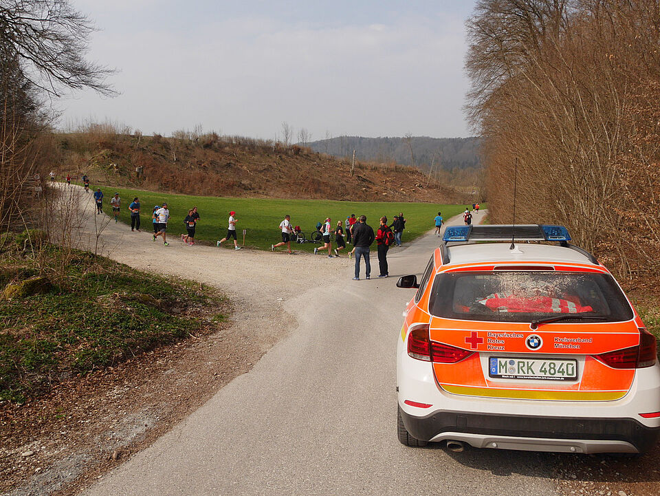 Die Bereitschaften des Münchner Roten Kreuzes waren mit über 20 ehrenamtlichen Helfer*innen inklusive Notarzt vor Ort. Neben der obligatorischen Sanitätsstation im Start-/Zielbereich gab es über die Strecke verteilt mehrere mobile Wachen. Ein Motorrad und das Notarzteinsatzfahrzeug begleiteten die Läufer. Aufgrund schwer befahrbarer Streckenabschnitte waren einige Allradfahrzeuge im Einsatz. Mit insgesamt fünf Erste-Hilfe-Leistungen war es ein sehr ruhiger Dienst.