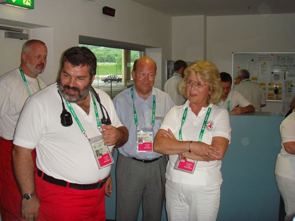 Am 21. JUni 2006, dem 4. Spieltag in München besuchte die Präsidentin des Bayerischen Roten Kreuzes, Prinzessin Christa von Thurn und Taxis, die ehrenamtlichen Helfer.