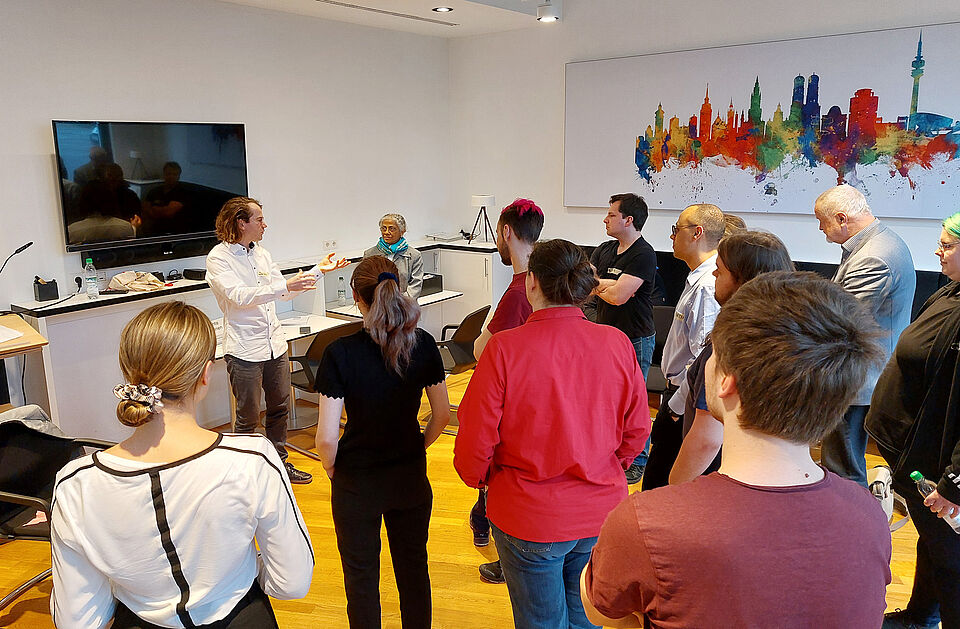 18 Teilnehmer*innen kamen dafür im Casino des Münchner Roten Kreuzes in der Perchtinger Straße zusammen. Der Tag begann mit einer Einführung in das humanitäre Völkerrecht und die aktuellen Entwicklungen durch digitale Kriegsführung. Außerdem führte David.a Koch vom Badischen Jugendrotkreuz in die Methode und den Ablauf ein.