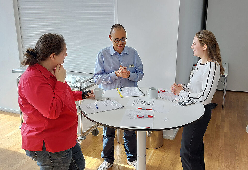 In der anschließenden Auswertung reflektierten die Rotkreuzler*innen das Planspiel und die Ähnlichkeiten und Unterschiede zur Realität. "Ich freue mich sehr, dass wir mit Unterstützung aus Baden heute dieses aufwändige Planspiel auch in München anbieten konnten", sagt Gabriel Bücherl, Konventionsbeauftragter des Münchner Roten Kreuzes. "Es war ein intensiver Tag und ich bin wirklich begeistert über die aktive Beteiligung und das Engagement der Teilnehmer*innen. Es ist wichtig, dass wir Gelegenheiten schaffen, das oft abstrakte humanitäre Völkerrecht anschaulich zu erleben."