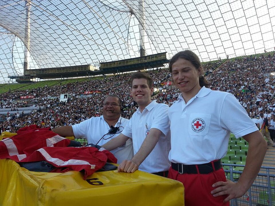 Mehr als 20 Einsatzkräfte der Bereitschaften des Münchner Roten Kreuzes sorgten für das Wohl der Fußballfans im Olympiastadion.