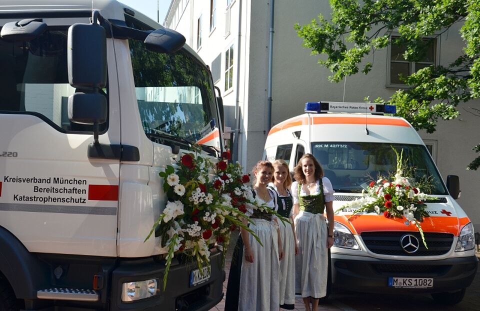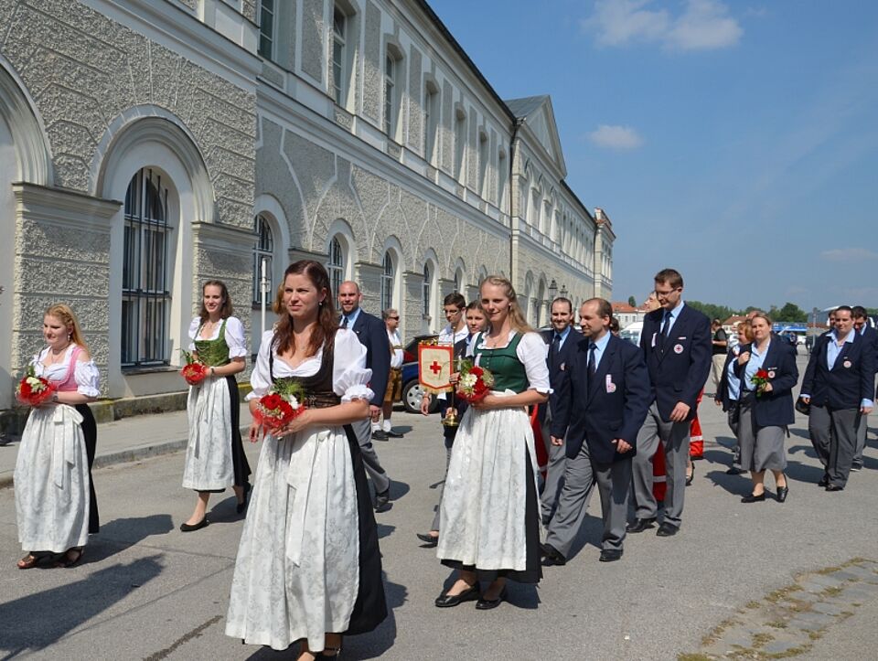 Rund 130 ehrenamtliche Helfer und durchschnittlich 20.000 freiwillige Dienststunden pro Jahr – das sind die Eckdaten, die Münchens größte Rotkreuz-Bereitschaft auszeichnen. Dementsprechend groß war die Jubiläumsfeier zum 80. Geburtstag, zu der die Bereitschaftsmitglieder am vergangenen Samstag Gäste aus dem Roten Kreuz, der Freiwilligen Feuerwehr, der Polizei und Münchner Trachtenvereinen sowie Politiker aus Stadt und Land in den Stadtbezirk Neuhausen-Nymphenburg einluden. Ausgangspunkt der Feierlichkeiten war ein Festgottesdienst mit anschließender Fahrzeugsegnung in der Pfarrei Christkönig (Notburgastraße). Von dort aus ging es mit einem Fahnenumzug vorbei am Nymphenburger Schloss und anschließend auf der Hirschgartenallee bis zum „Königlichen Hirschgarten“. Angeführt wurde der Umzug unter den Augen von zahlreichen Schaulustigen von der Musikkapelle des Bayerischen Roten Kreuzes. Beim Eintreffen am südlichen Haupteingang des Biergartens begrüßten Böllerschützen die Rotkreuzler und ihre Gäste und wurden dafür mit einem Applaus der anwesenden Biergartenbesucher belohnt.