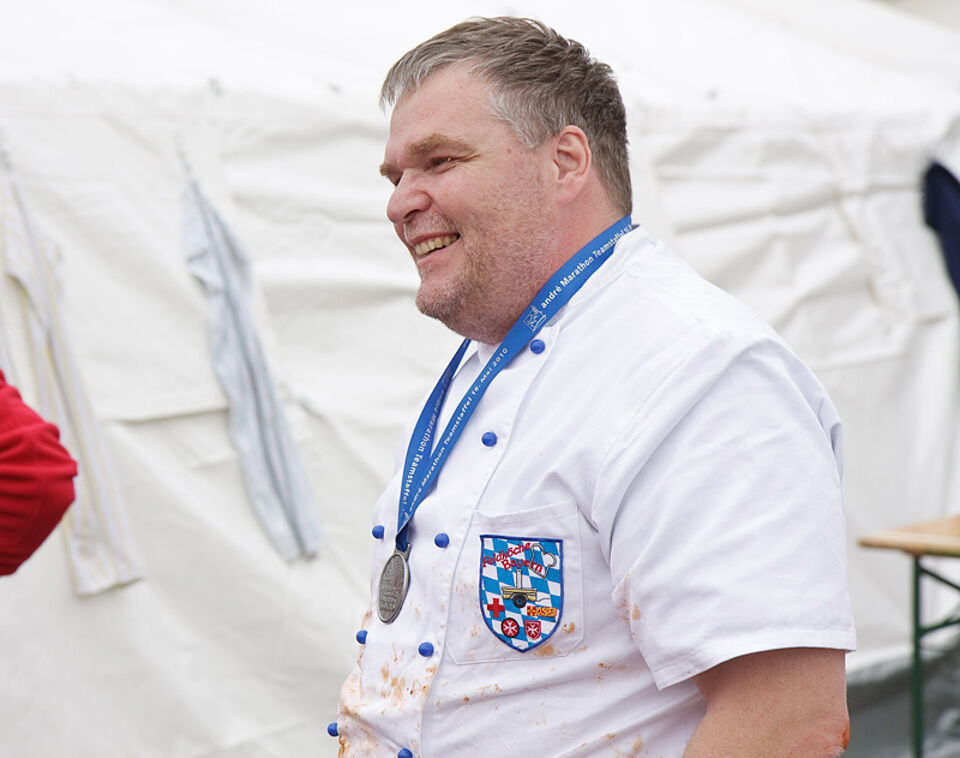 An zwei Tagen 8500 Portionen Nudeln mit Soße für die Teilnehmer des 20. Regensburg Marathon am 15. und 16. Mai: Eine echte Herausforderung für die ehrenamtlichen Küchenteams des Roten Kreuzes in Regensburg. Deshalb holten sie sich erfahrene Unterstützer aus München, Kitzingen und Mömlingen, um auf drei Feldküchen zwei Tage lang alles zu geben.