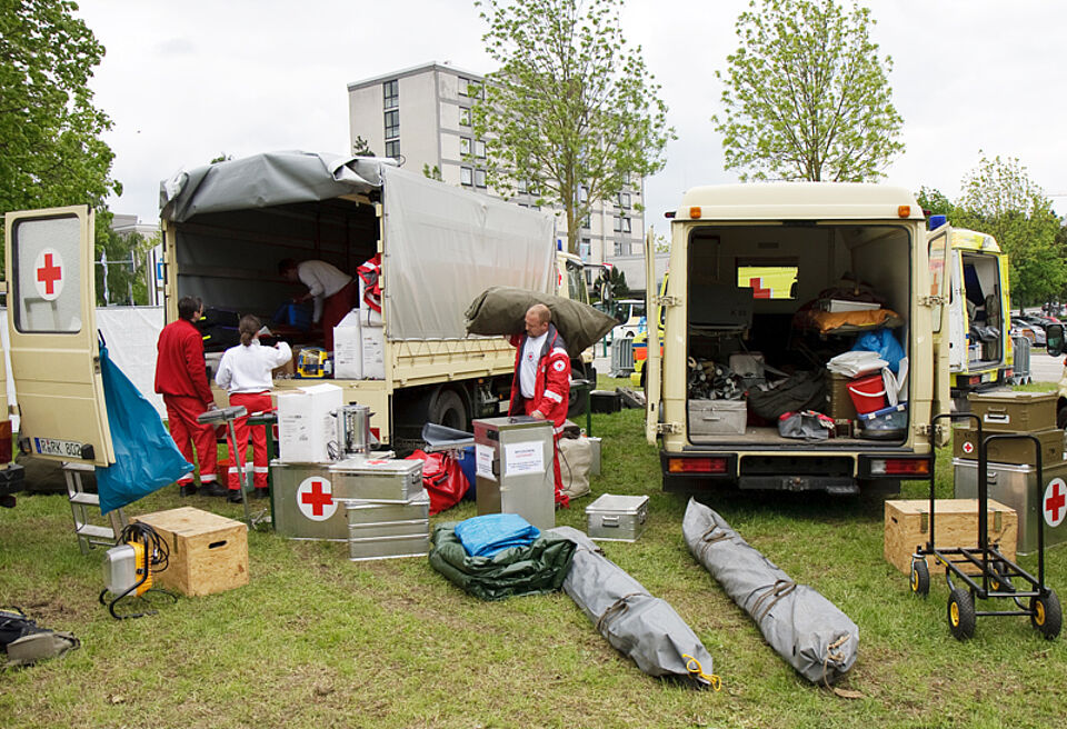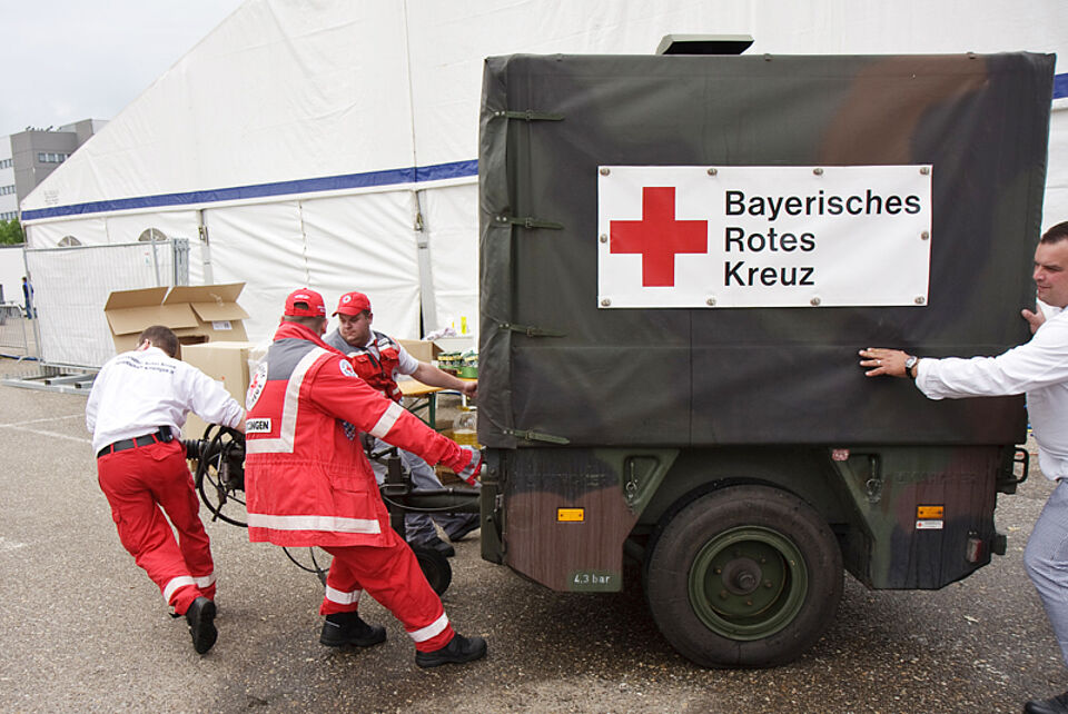 Betreuungsdienstes im Roten Kreuz, der sich um Unverletzte kümmert sowie Notunterkünfte betreibt und Logistikaufgaben übernimmt.