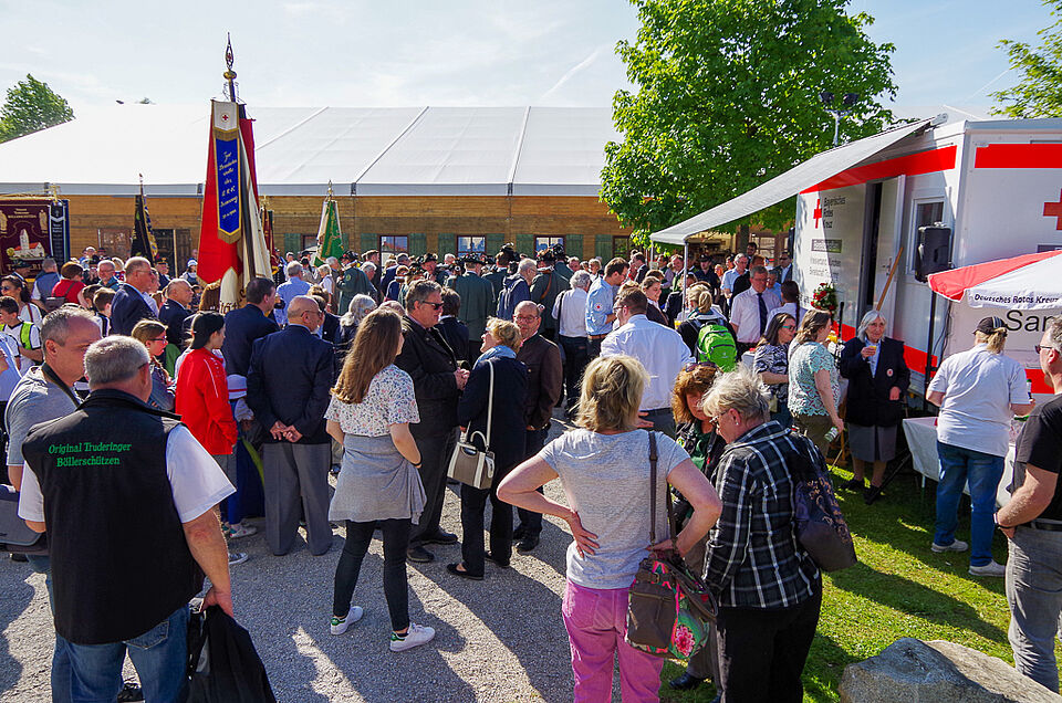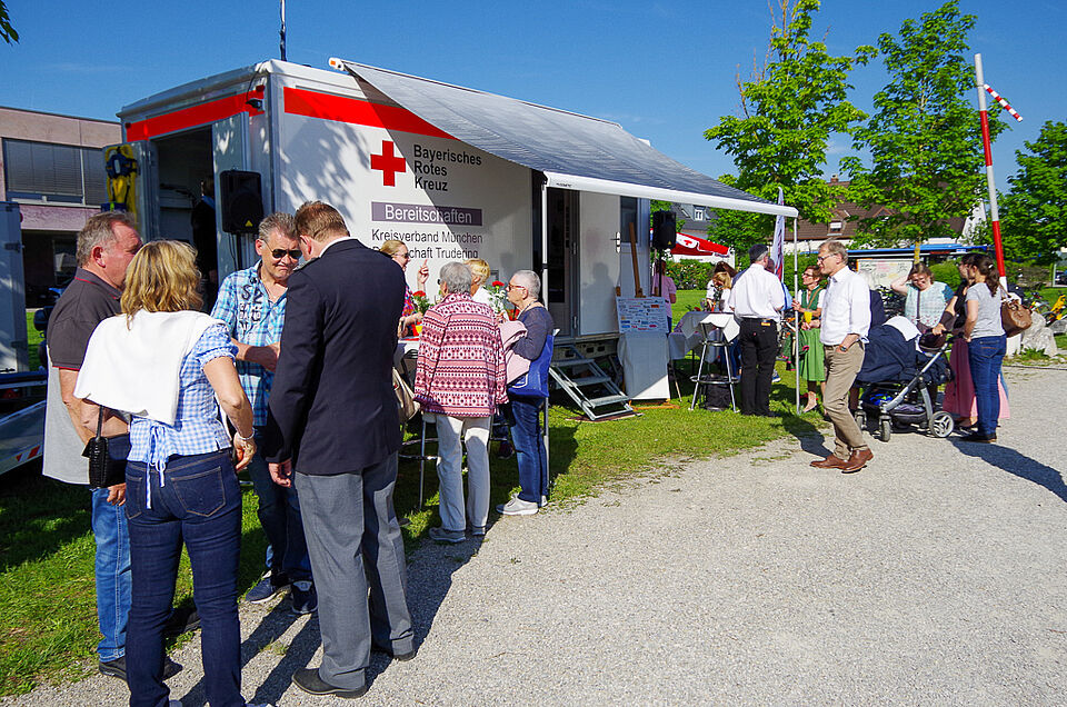 Am Freitag um 16 Uhr war es nach über einem Jahr soweit: Die ehrenamtlichen Helfer*innen der Bereitschaft Trudering des Münchner Roten Kreuzes nahmen pünktlich zur Truderinger Festwoche den neuen Sanitätsanhänger in Betrieb.