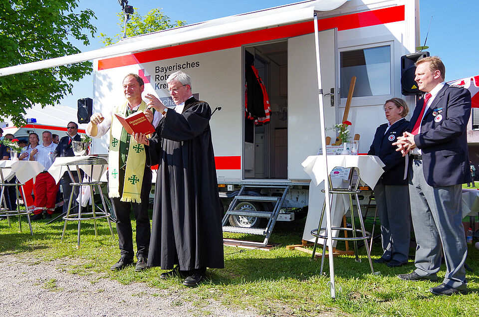 Mit der neuen mobilen Wache werden auf den Sanitätsdiensten optimale Behandlungsmöglichkeiten geschaffen, vom Pflaster bis zu lebensbedrohlichen Notfällen. Im Kreis der Spender, die das Projekt ermöglicht haben, wurde der Anhänger gesegnet und offiziell in Dienst gestellt.