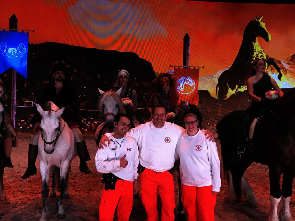 So blieb auch den Sanitätern genug Zeit die Show zu erleben: Atemberaubende spektakuläre Reitkunst, begeisternde Akrobatik eingebettet in eine nette Geschichte über Mut, Freundschaft und den Zauber der Begegnung zwischen Mensch und Pferd machen EQUILA zu einem einzigartigen Showerlebnis. Durch die einzigartige Technik mit der riesigen LED Wand ist man als Zuschauer mittendrin und nicht nur dabei.