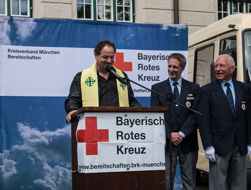 Stadtpfarrer Rainer Maria Schießler stellte in seiner ökumenischen Segensansprache die Notwendigkeit heraus, selbstlos für die da zu sein, die Hilfe benötigen. Dies sei sowohl tief im religiösen Handeln verwurzelt als auch ein zentraler Bestandteil des Roten Kreuzes als Hilfsorganisation. Die Sensibilität, den "Ruf" zu hören, käme er nun von Gott oder einem Fernmeldeempänger, und die Bereitschaft, auch darauf zu reagieren, sei nicht selbstverständlich und deshalb höchst lobenswert.