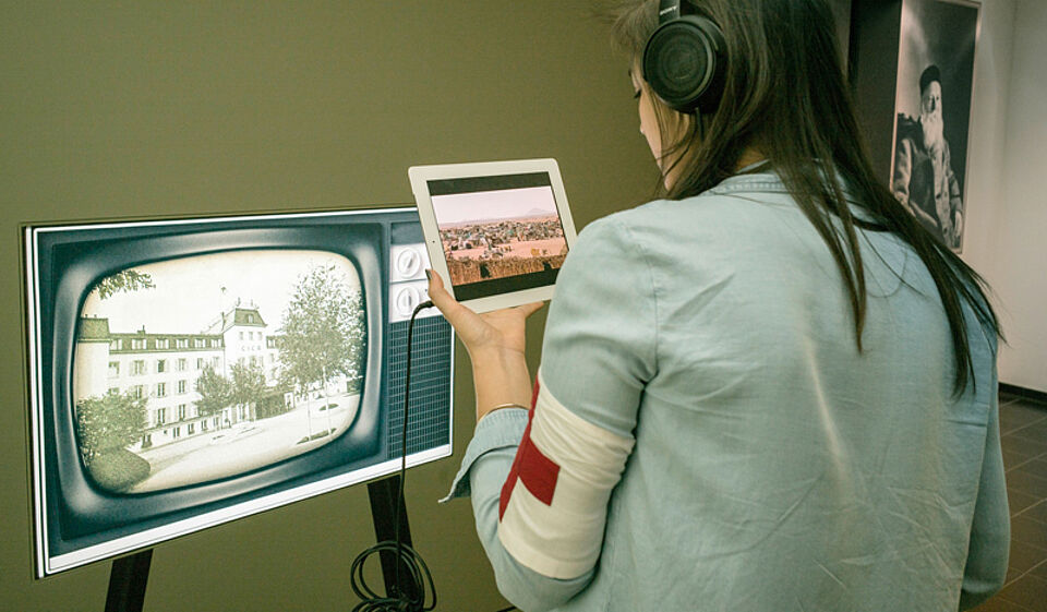 Anlässlich des 150. Jahrestages der Genfer Konvention gestaltete das Henry Dunant-Museum Heiden (Schweiz) im Jahr 2014 die Sonderausstellung „Was zählt der Mensch?“. Diese zeigt das Münchner Rote Kreuz nun in den Räumen seines Hauses Alt-Lehel. Mit Tablet-Computer und Kopfhörer begeben sich die Besucher*innen auf Entdeckungsreise. Die Kamera des Tablets erkennt im Ausstellungszelt immer wieder virtuelle Informationen zur Geschichte des Humanitären Völkerrechts und des Internationalen Komitees vom Roten Kreuz. In Texten, Ton- und Videobeiträgen lässt sich die Geschichte und die Aktualität der Genfer Konvention hautnah erleben. Das gilt auch für die Schrecken und Gefahren bewaffneter Konflikte für Unbeteiligte, wenn plötzlich auf dem afghanischen Teppich auf dem Boden Landminen erscheinen, die explodieren, wenn man nicht aufpasst. Oder aber, wenn die Besucher*innen mit einer Waffe bedroht werden. Mit solch eindringlichen Bildern weckt die Ausstellung Emotionen und lädt die Besucher*innen zum Nachdenken ein.