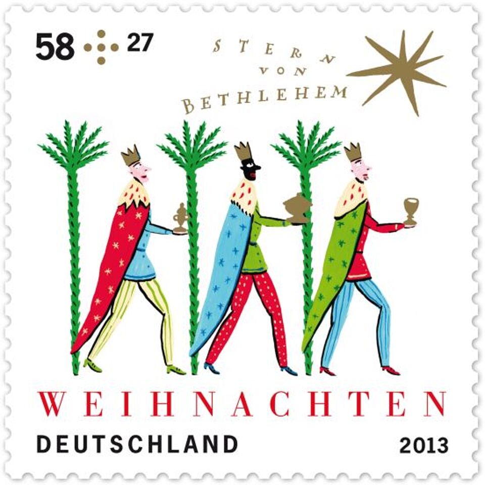 Für die Weihnachtspost mit „Mehrwert“: Ab jetzt ist die neue Weihnachtsmarke mit dem Motiv „Stern von Bethlehem“ erhältlich. Die von der Berliner Künstlerin Kitty Kahane entworfene Weihnachtsmarke 2013 erinnert an das zentrale Geschehen in der Heiligen Nacht: den Weg der Heiligen Drei Könige in die Stadt Bethlehem zur Geburt Christi.